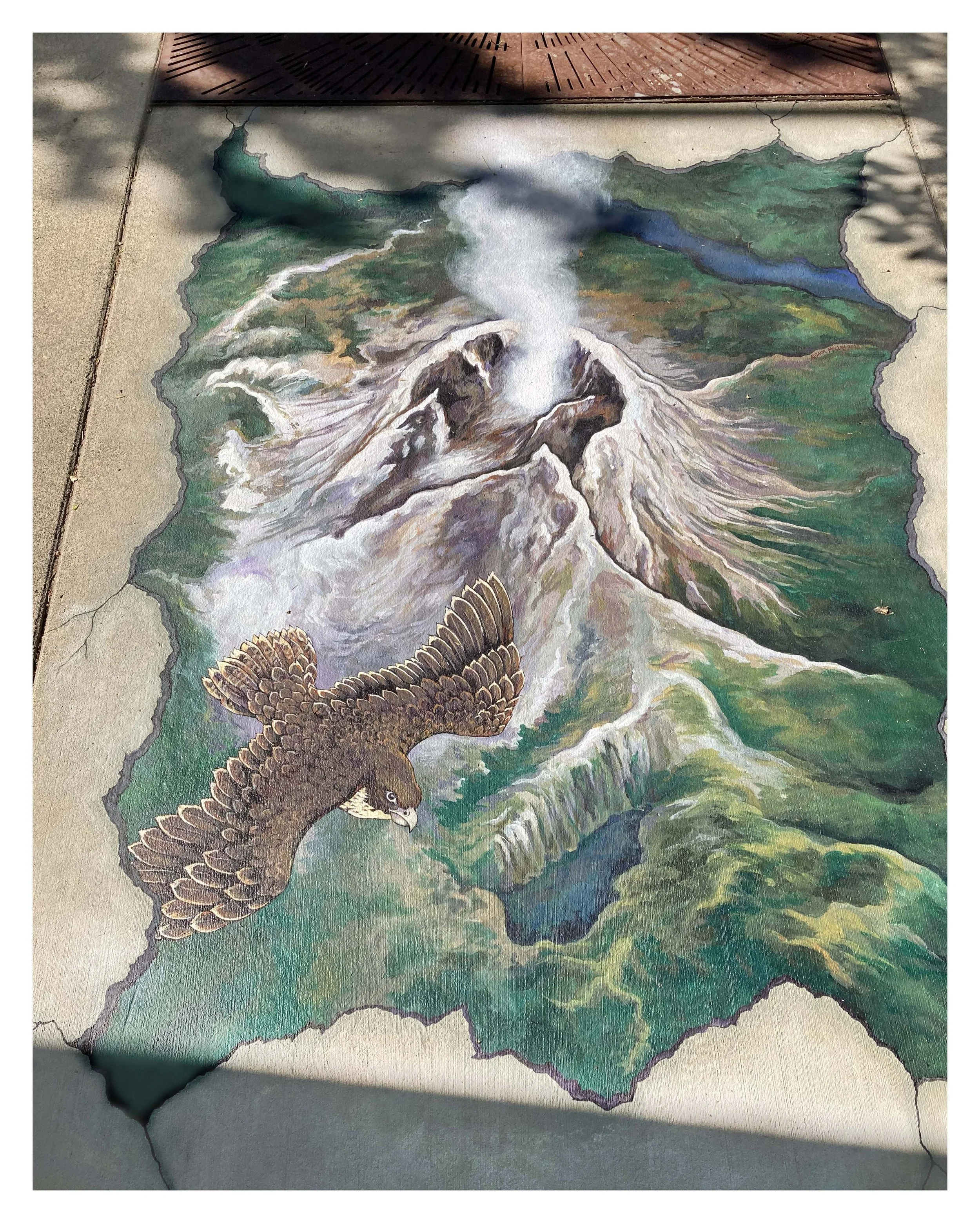 Last week I painted an eagle’s nest for the sidewalk outside the Washougal Eagles lodge, just down Main Street from the Loowit sidewalk painting I did earlier in the summer.