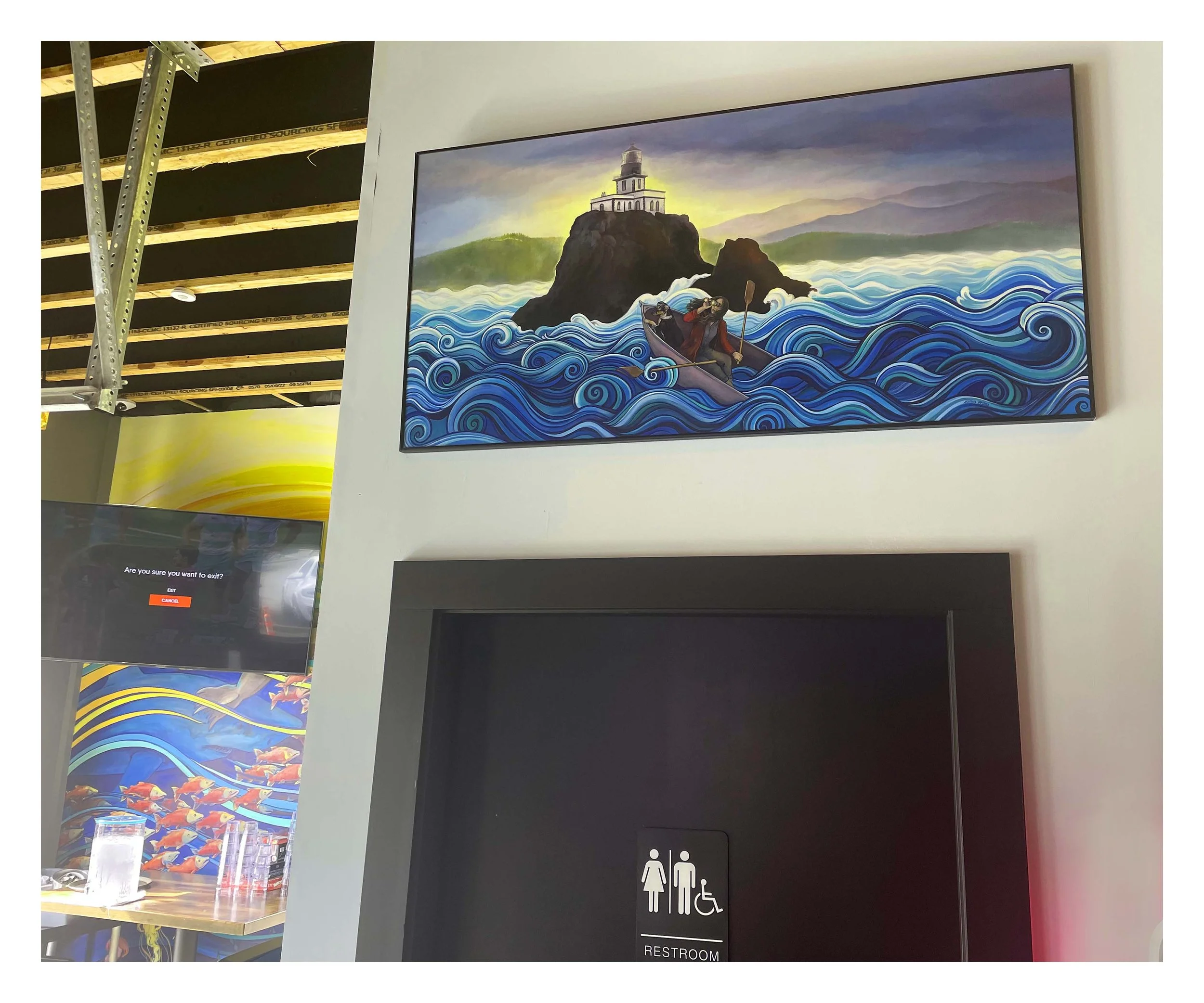 I wanted to create a painting for Seaside of Terrible Tilly, their iconic lighthouse. This piece is installed at Iggy’s next to my murals, and is available for purchase.