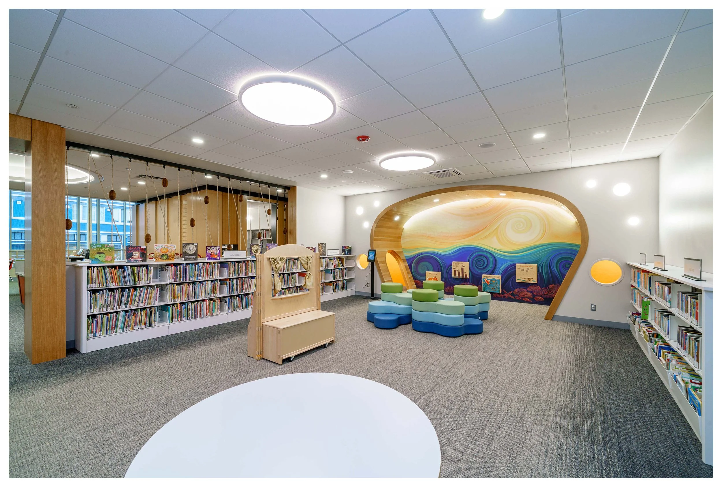 Our wallpaper installed in the children's section of the new Astoria Public Library November 14, 2025 Digital design, a collaboration with Rudy Redstone Serna